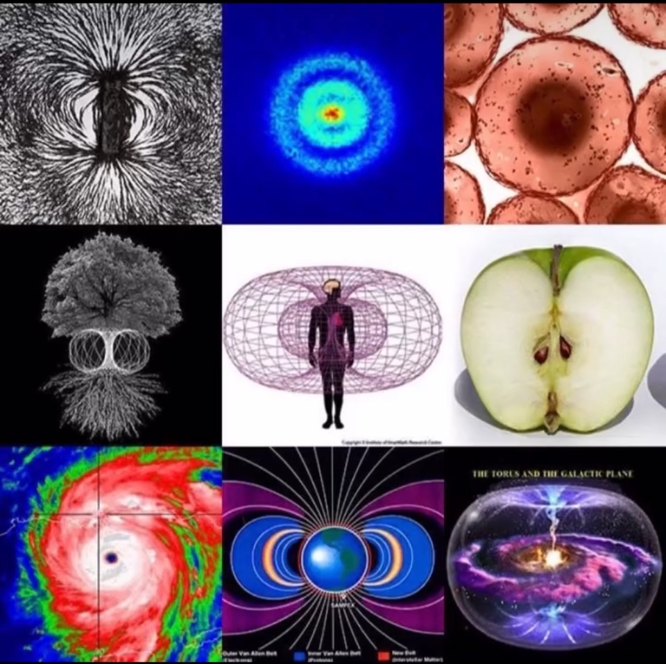 The torus (a donut-like shape) represents one of nature’s most efficient and ubiquitous geometric patterns—a self-sustaining, balanced system of energy flow that appears at virtually every scale of existence. From subatomic particles to galaxies, this dynamic, donut-shaped vortex reveals itself as a fundamental organizing principle of our universe.